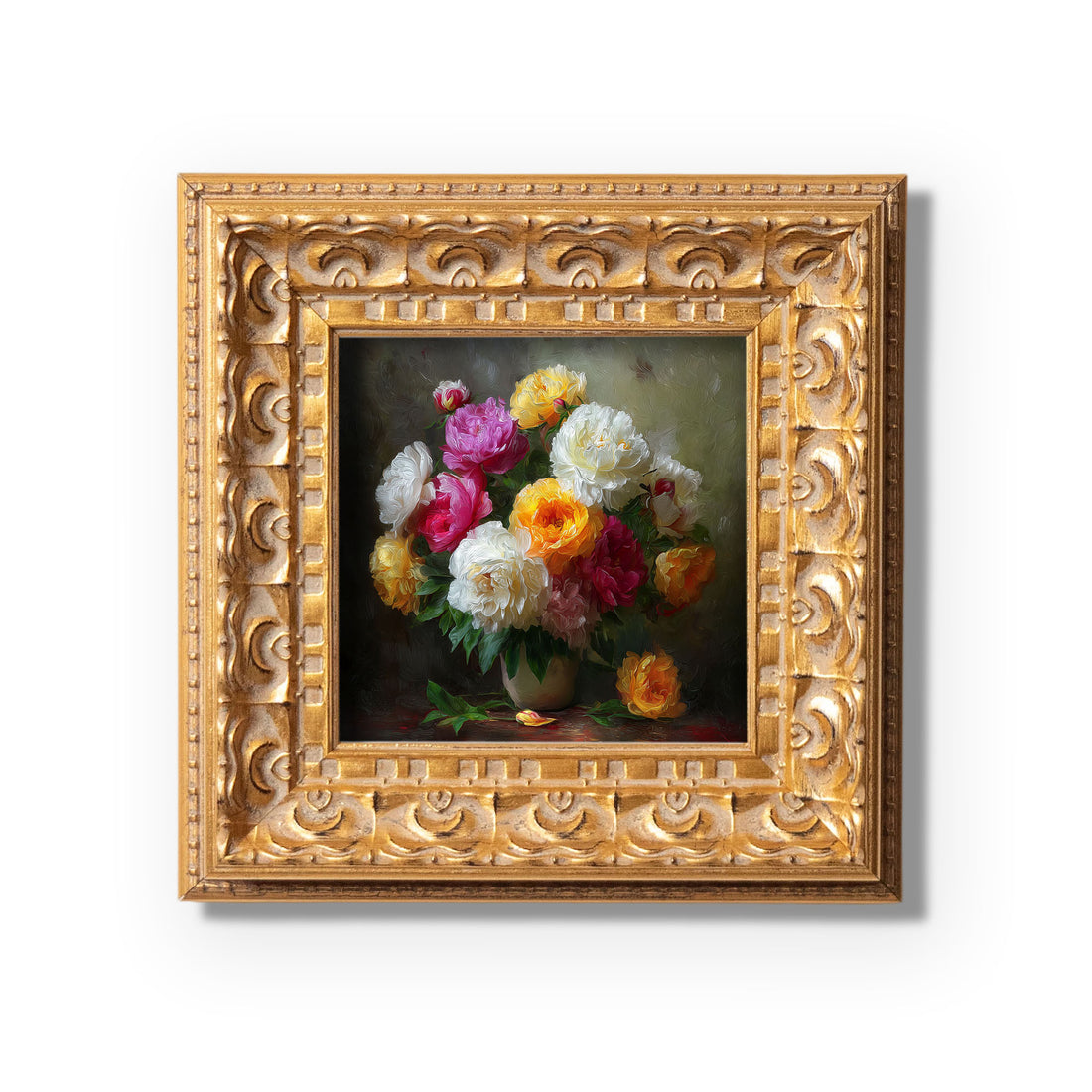 Original Colorful Floral Bouquet Oil Painting, Romantic Vintage Wall Art, Hand Painted Ornate Gold Frame Home Decor, Elegant Living Room Decoration, Gift For Friends