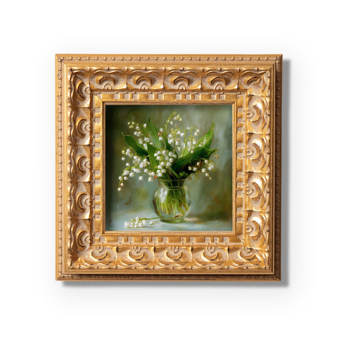 Original Lily Of The Valley Oil Painting, Delicate Floral Wall Art, Hand Painted Ornate Gold Frame Home Decor, Serene Bedroom Decoration, Gift For Friends