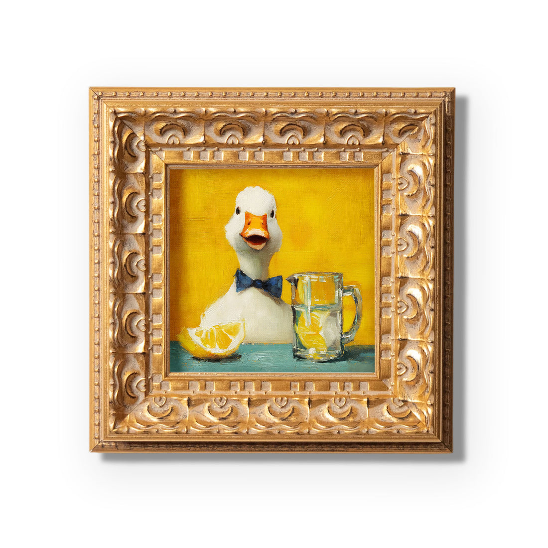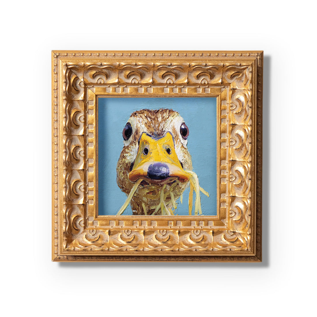 Small Original Hand Painted, Crying Duck Oil Painting, Living Room Wall Art Decor, 5X5 Gold Framed Artwork, Christmas Gift for Friends