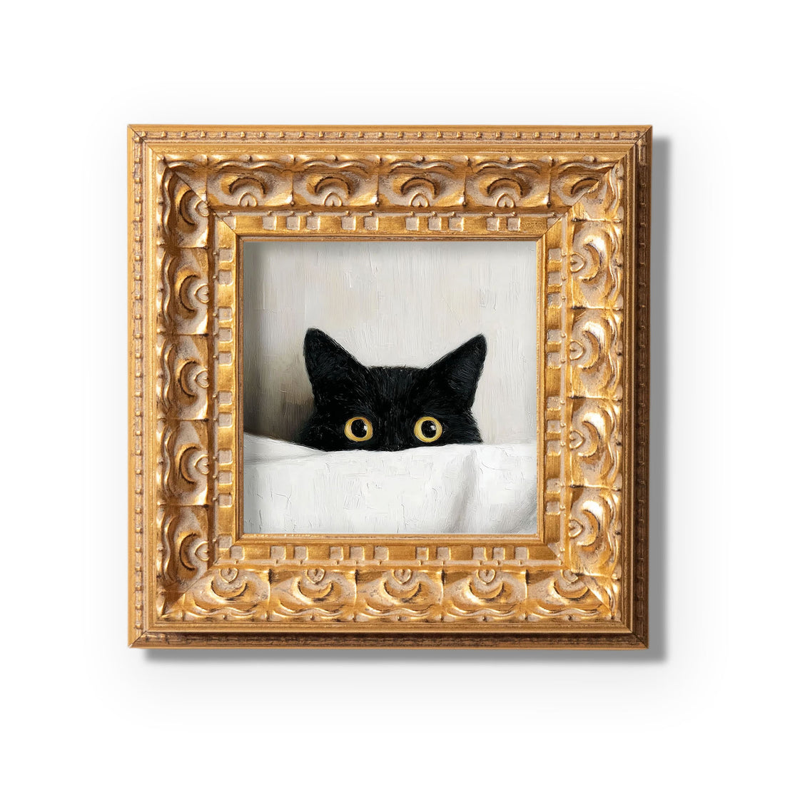 Small Peeking Black Cat Oil Painting, Original Hand Painted, Custom Kitty Portrait, Holiday Wall Art, 5X5 Winter Decor, Christmas Gift