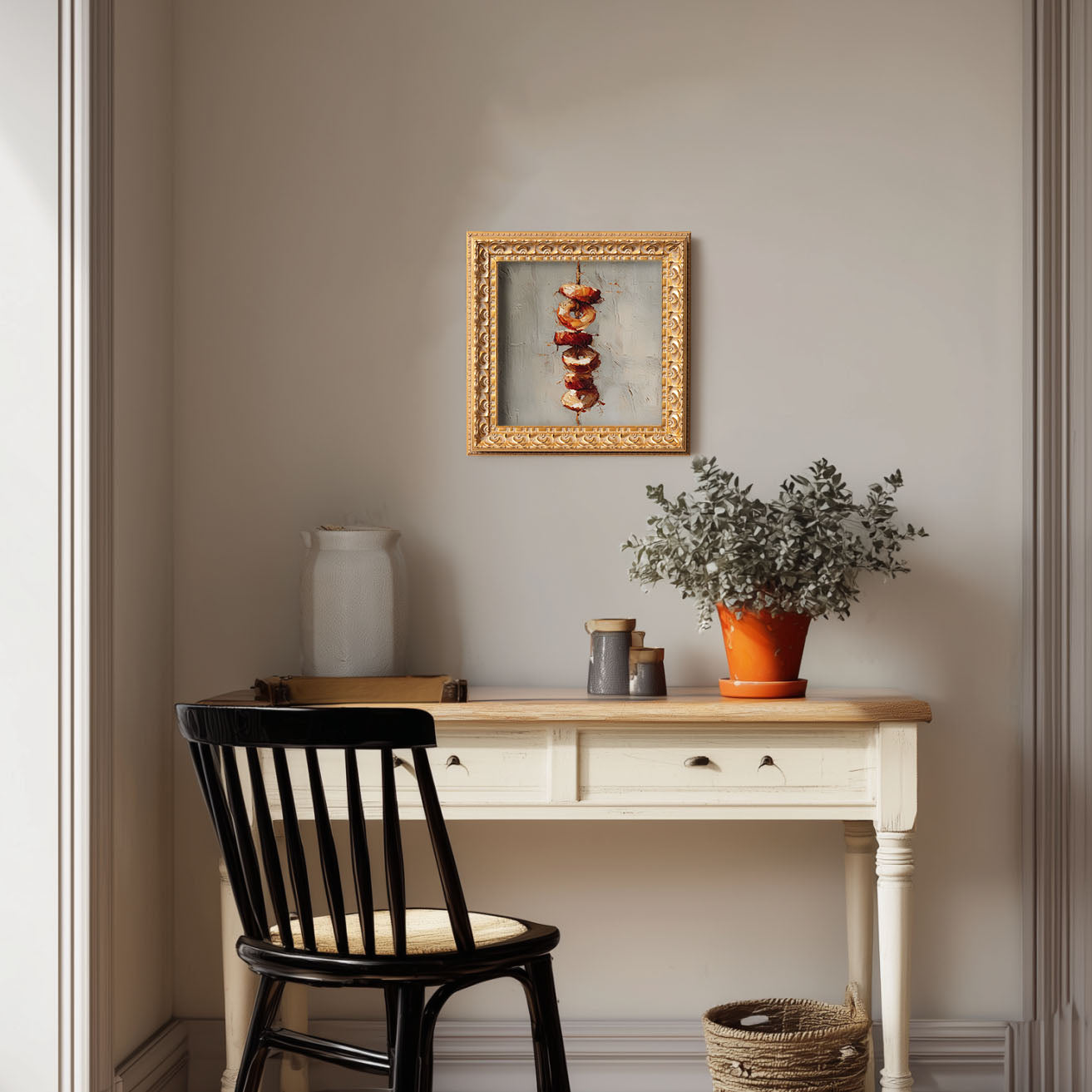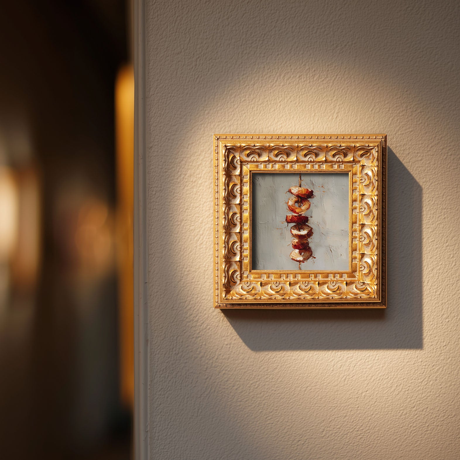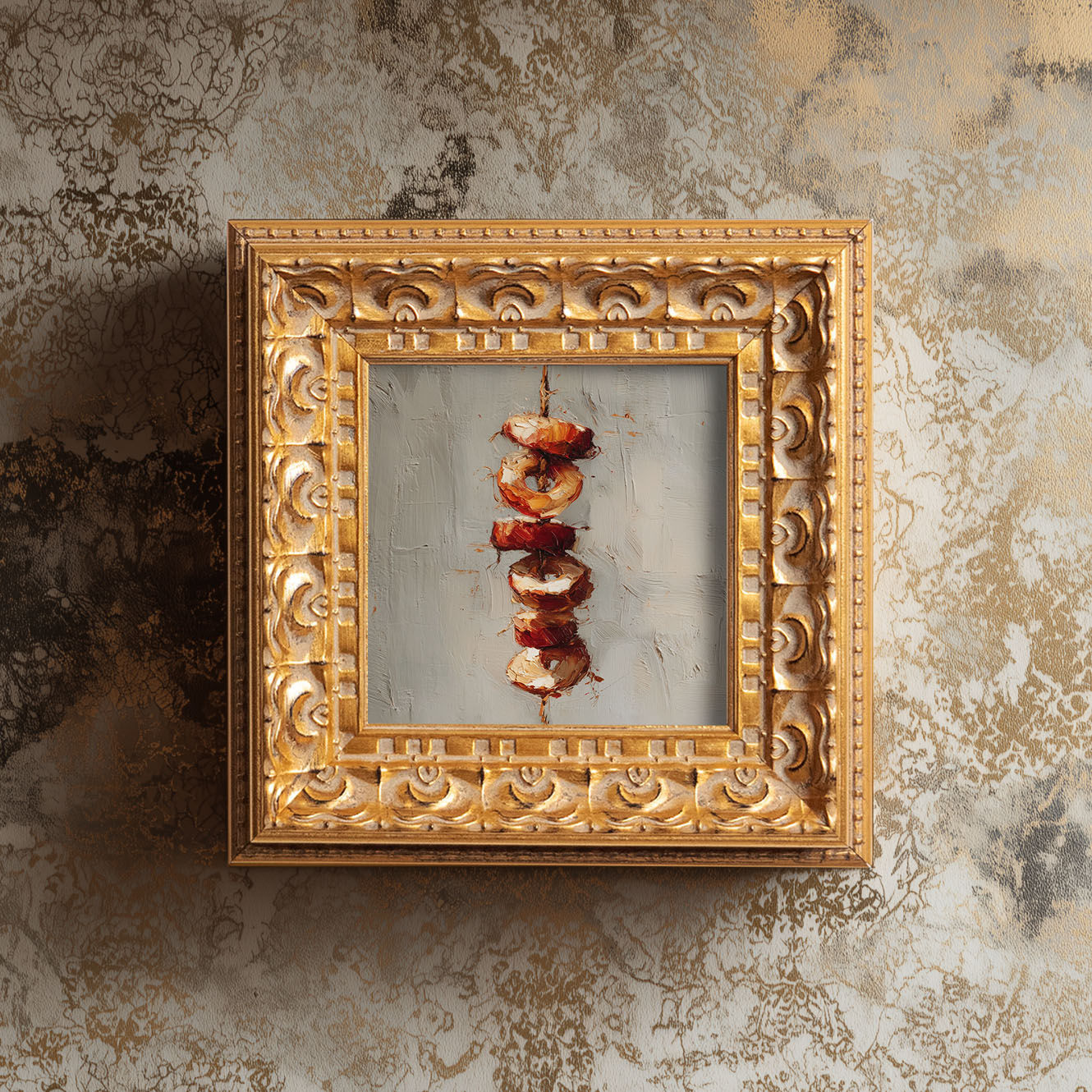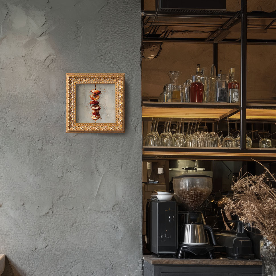 Grilled Skewers Still Life, Original Oil Painting, Food Art, Impasto Kitchen Wall Decor, Small Framed Artwork