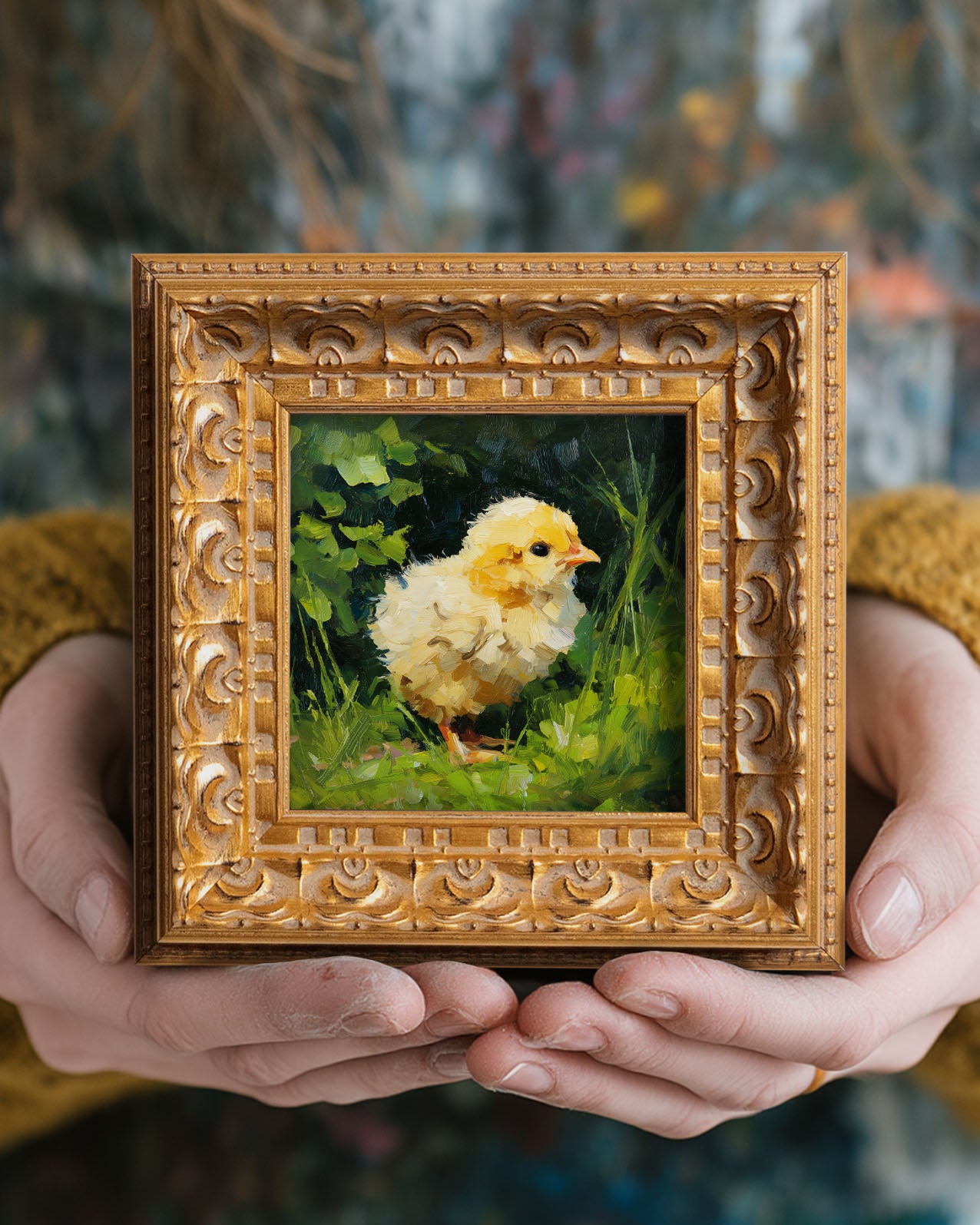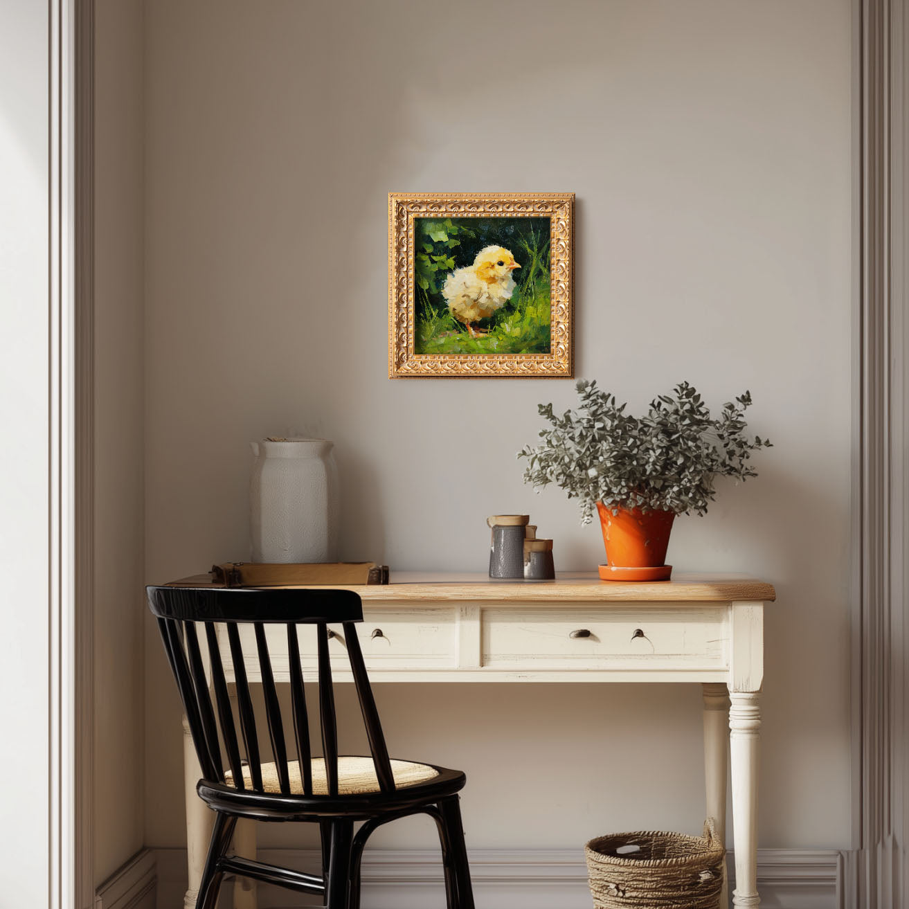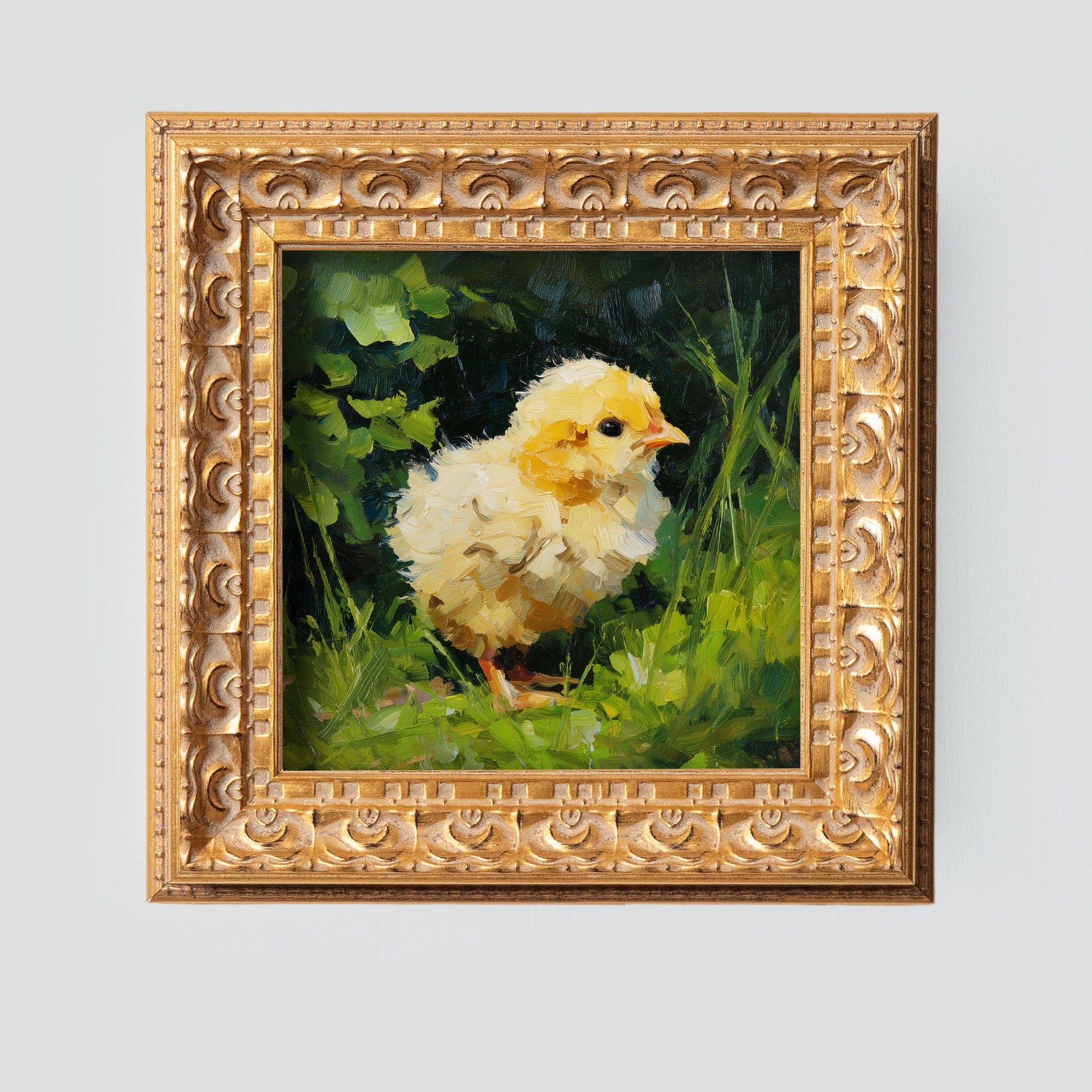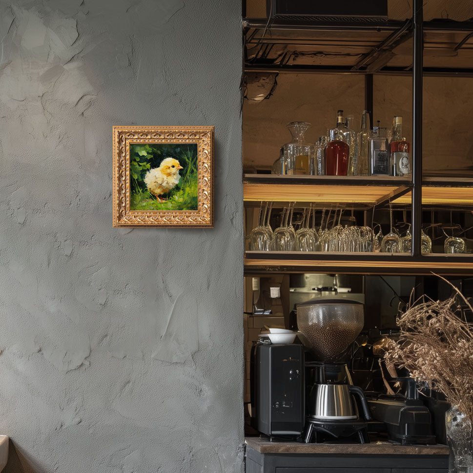Hand Panted Chick Oil Painting, Original Art, Living Room Wall Art Decor, 5X5 Gold Framed Artwork, Still life Wildlife, Gift for friends