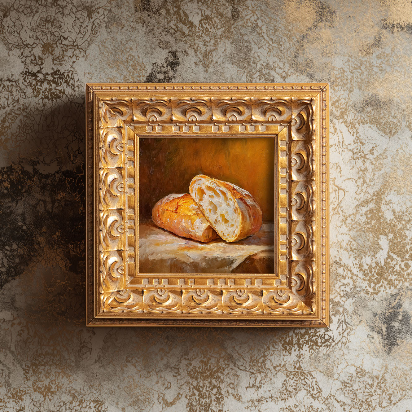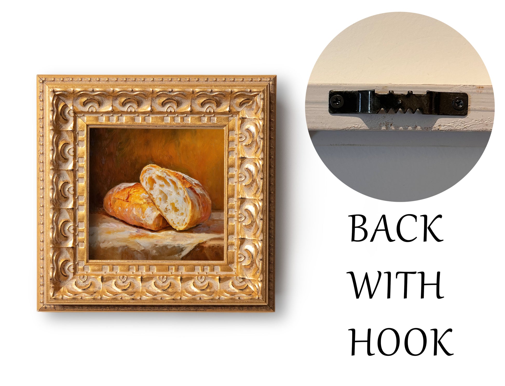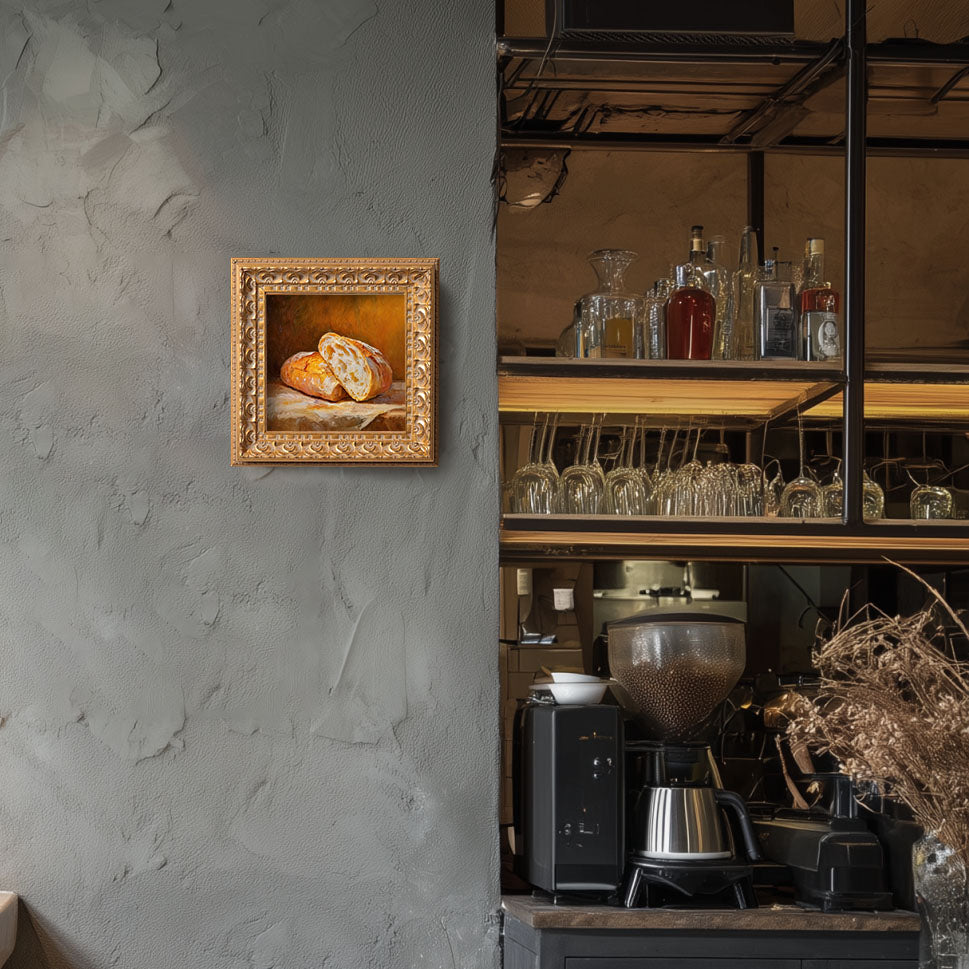 Original Baguette Oil Painting, Rustic Kitchen Wall Art, Hand Painted Ornate Gold Frame Home Decor, Warm Dining Room Decoration, Gift For Friends