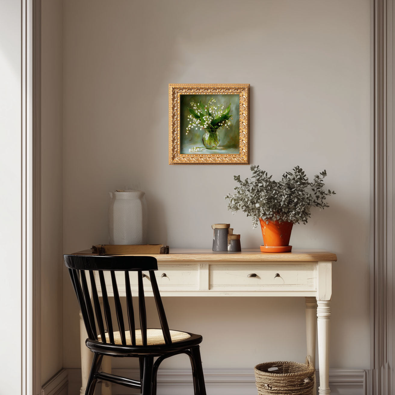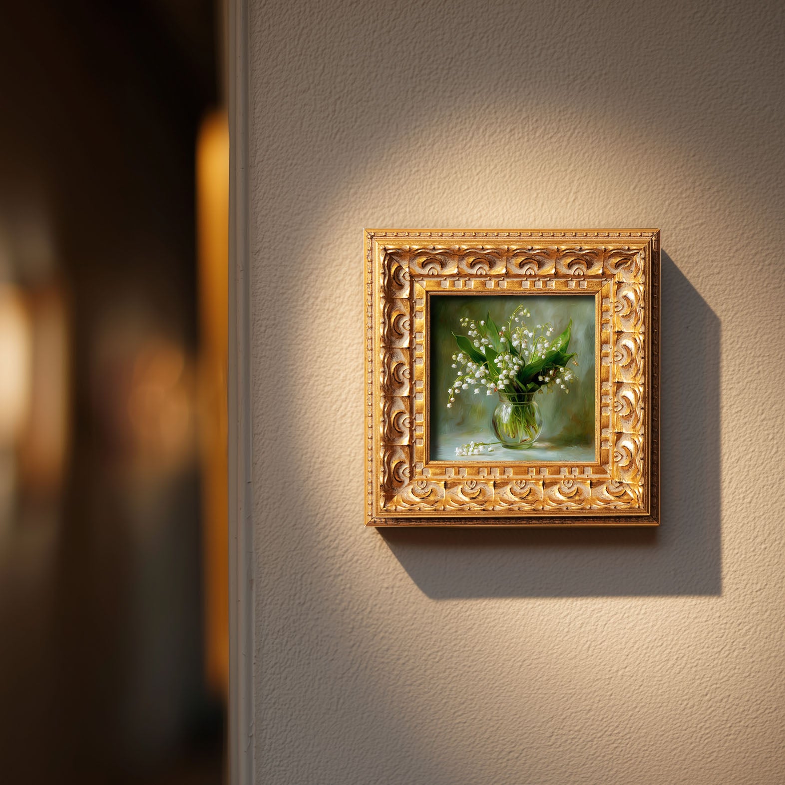 Original Lily Of The Valley Oil Painting, Delicate Floral Wall Art, Hand Painted Ornate Gold Frame Home Decor, Serene Bedroom Decoration, Gift For Friends