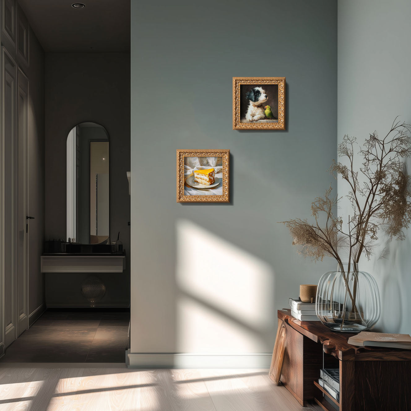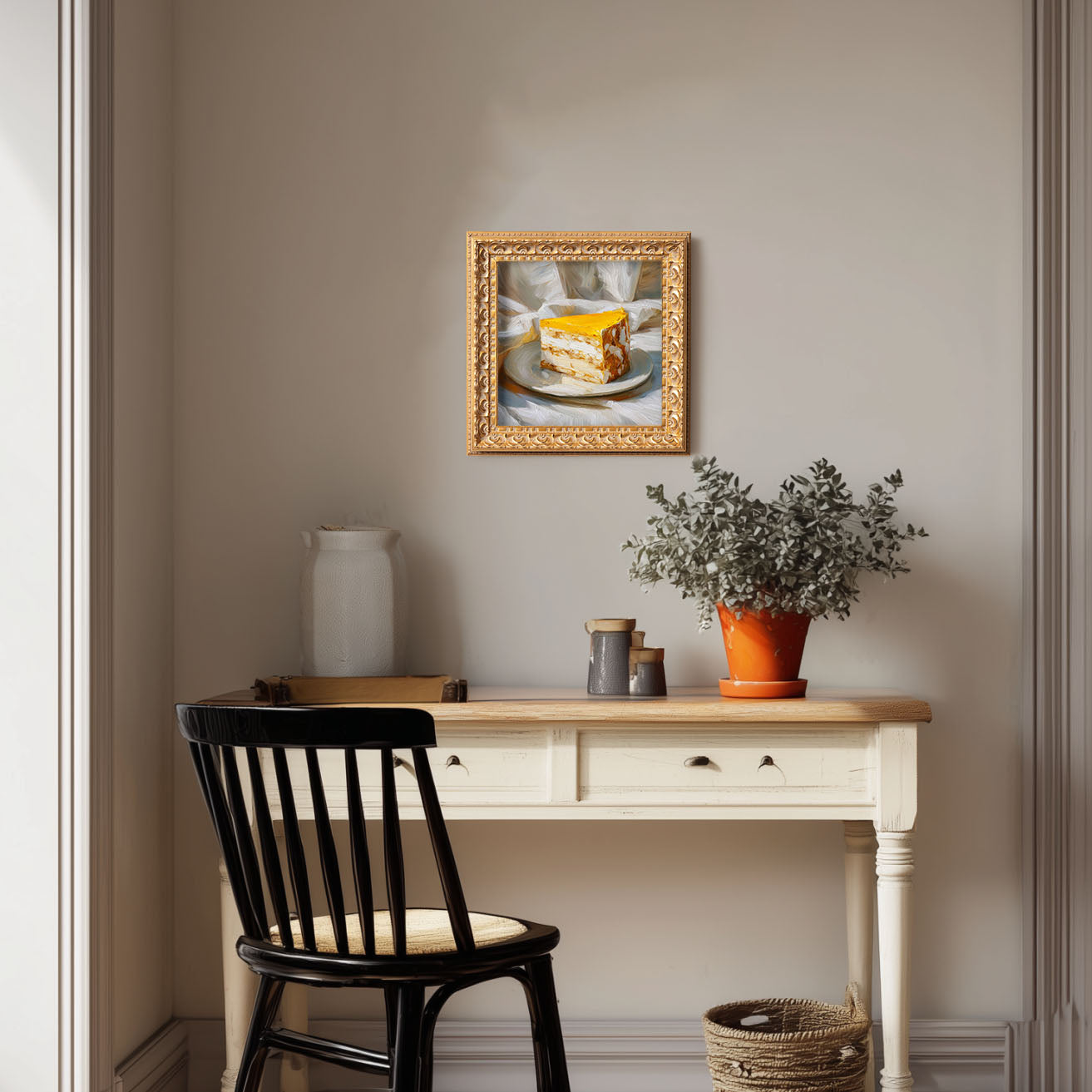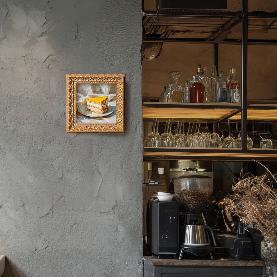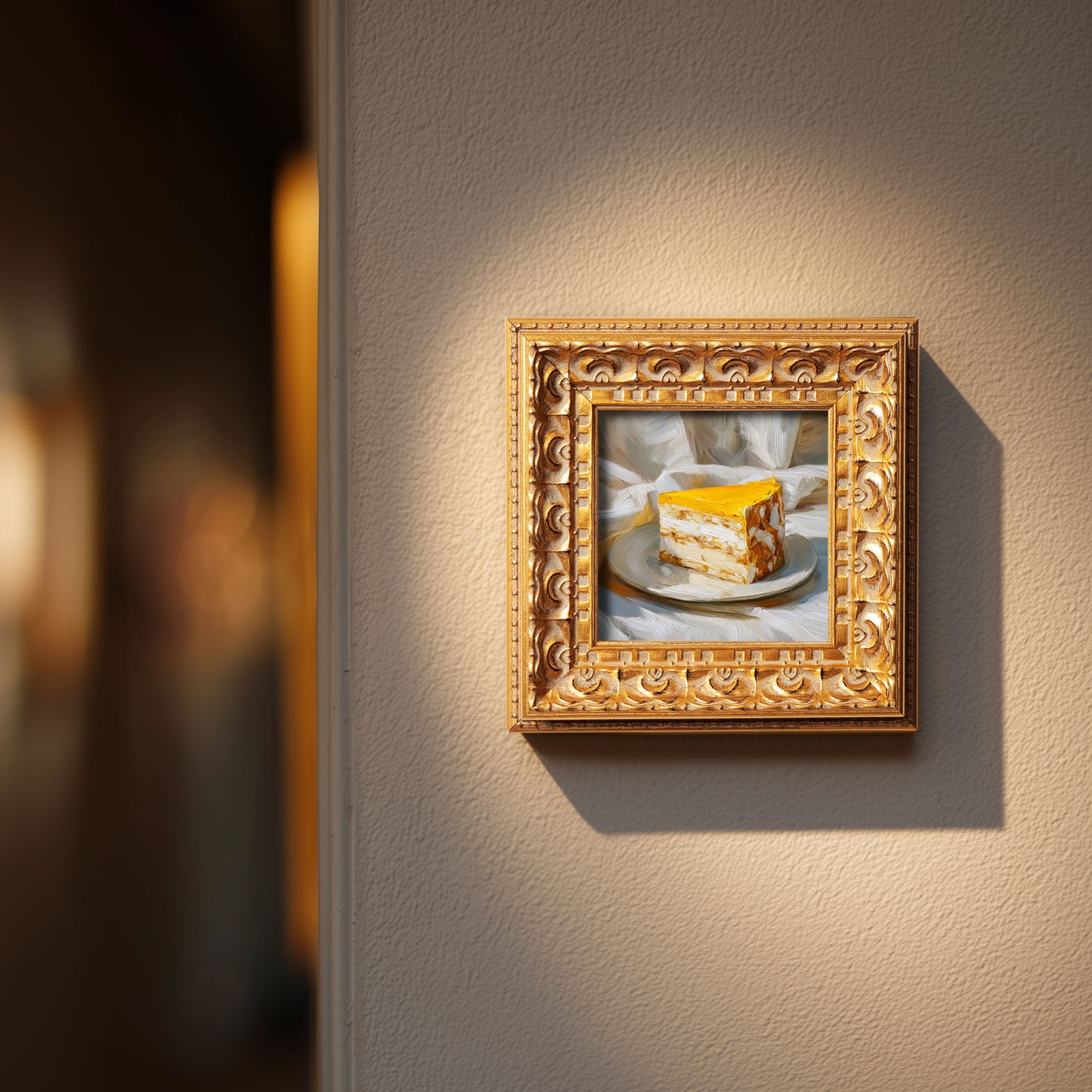 Original Mango Mousse Cake Oil Painting, Bright Kitchen Wall Art, Hand Painted Ornate Gold Frame Home Decor, Vibrant Dining Room Decoration, Gift For Friends
