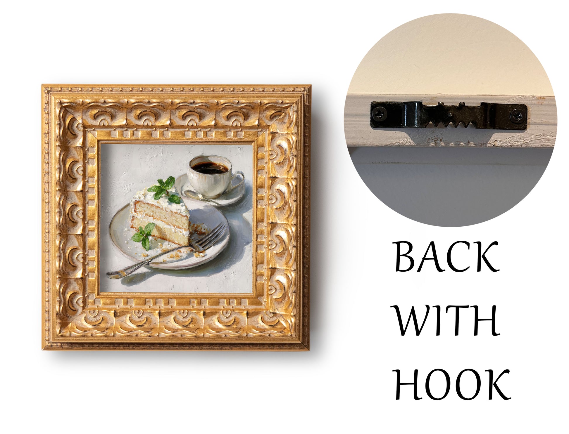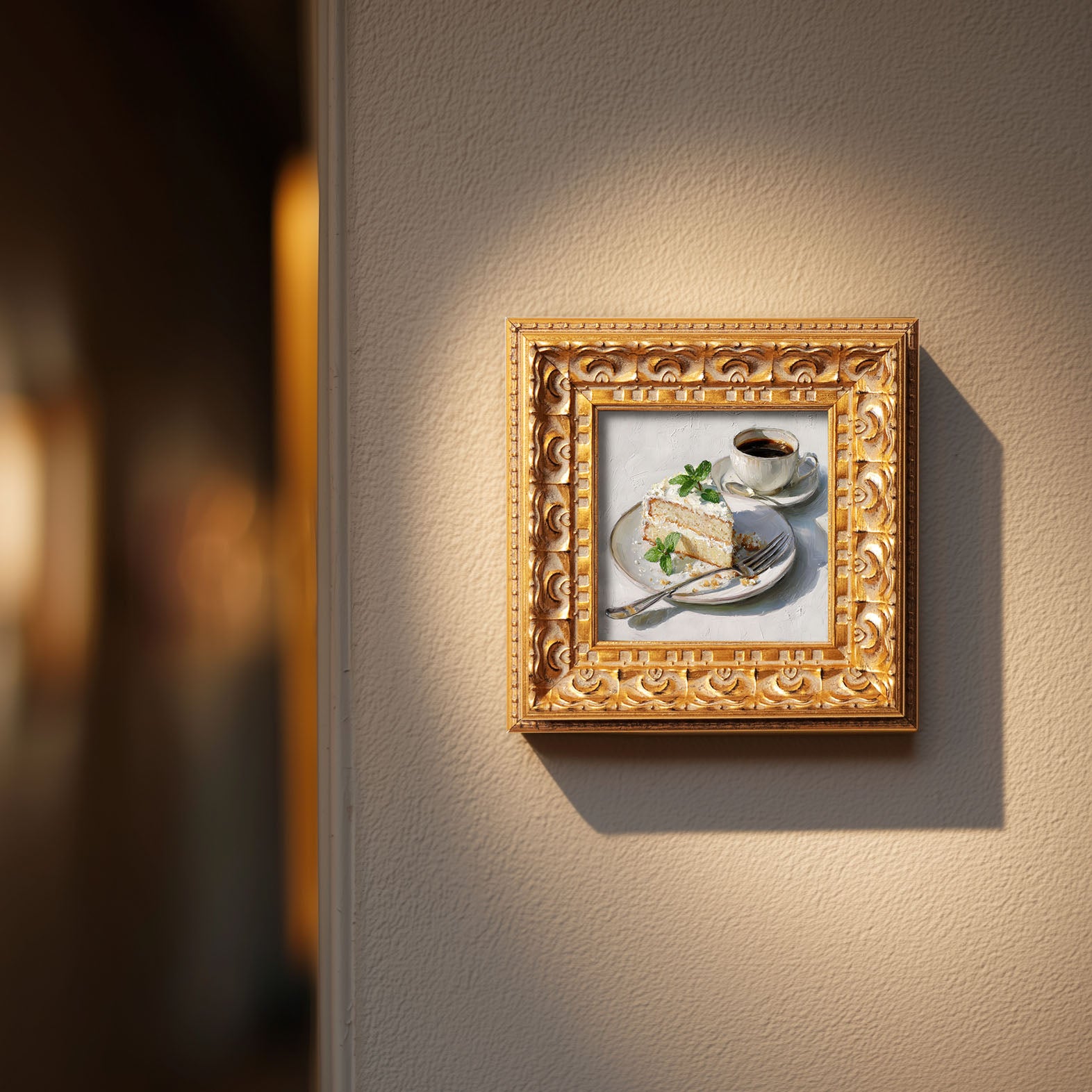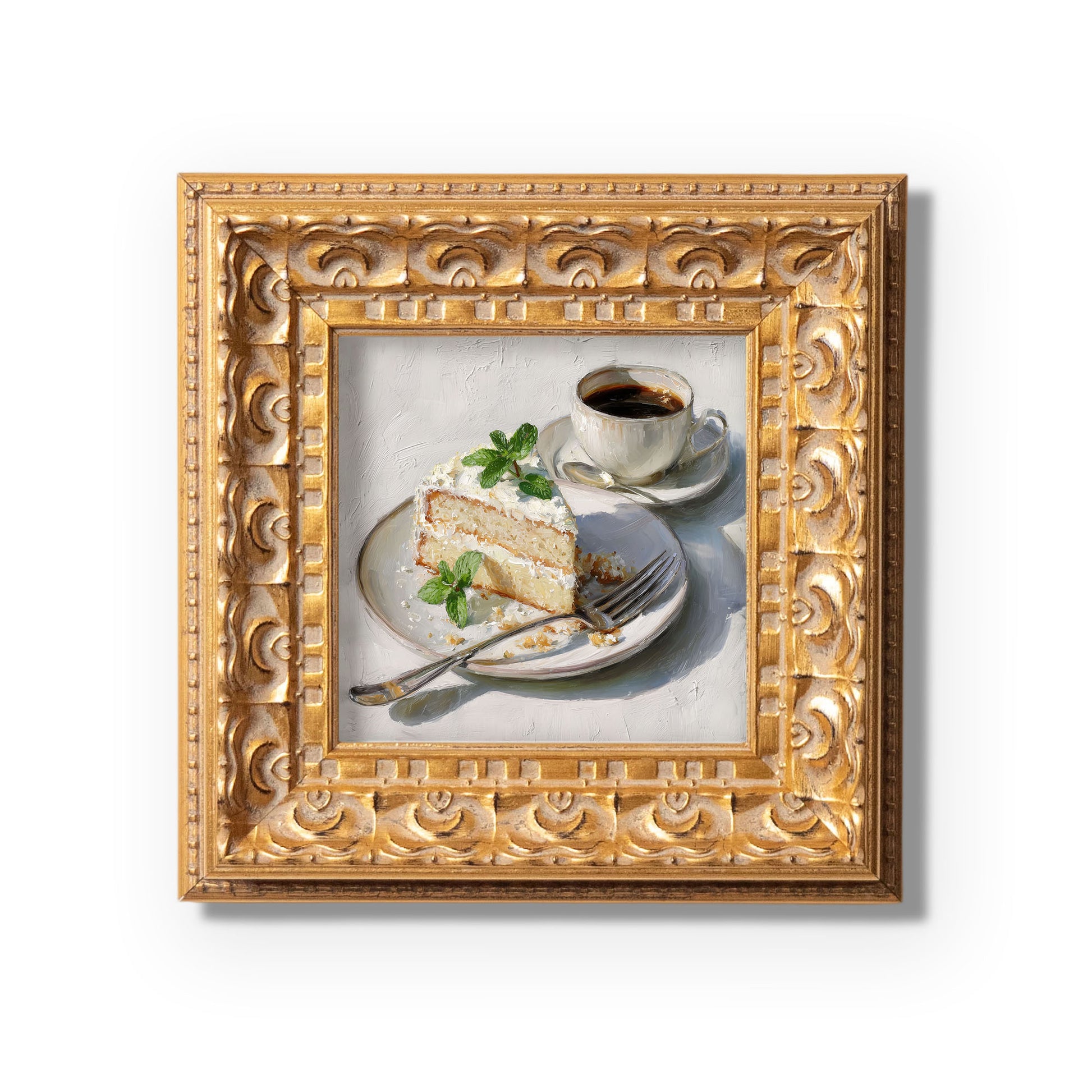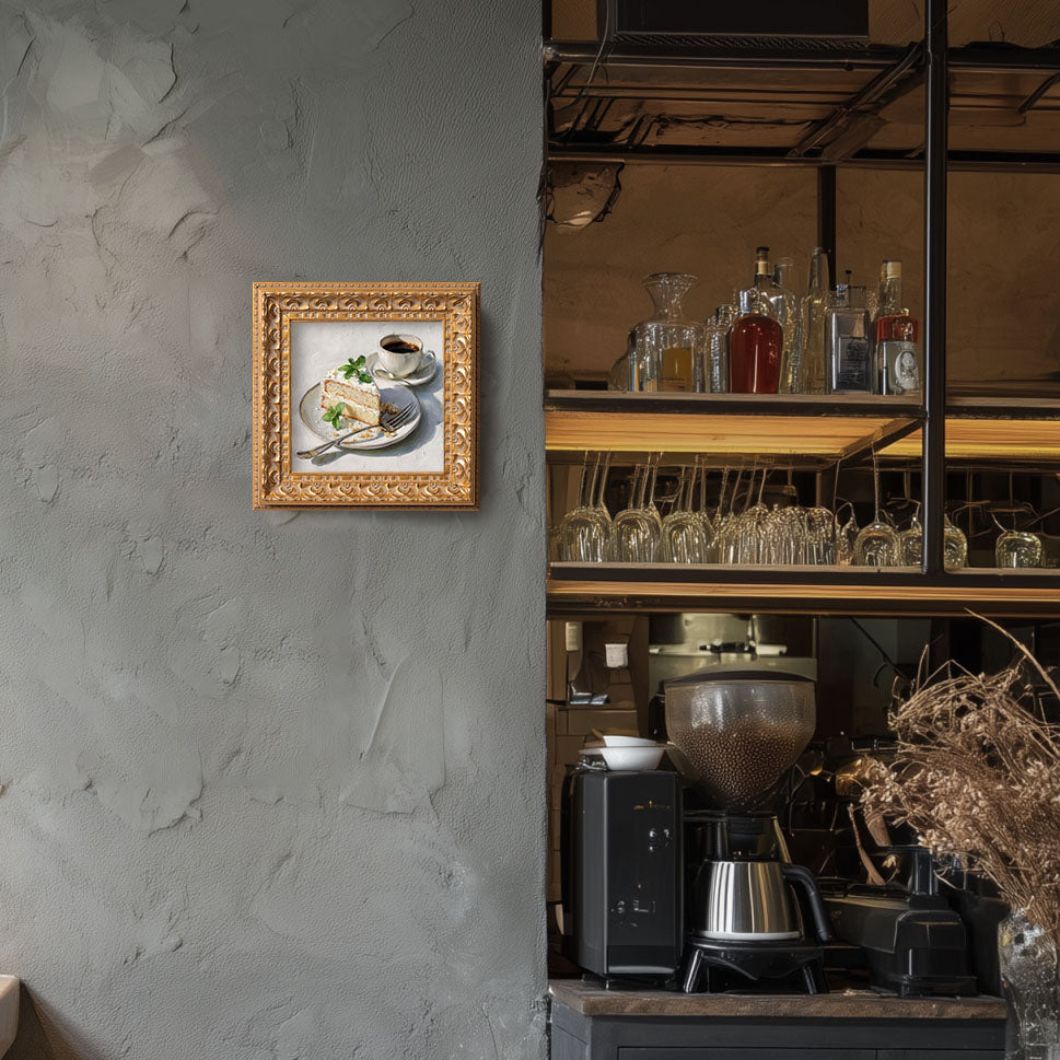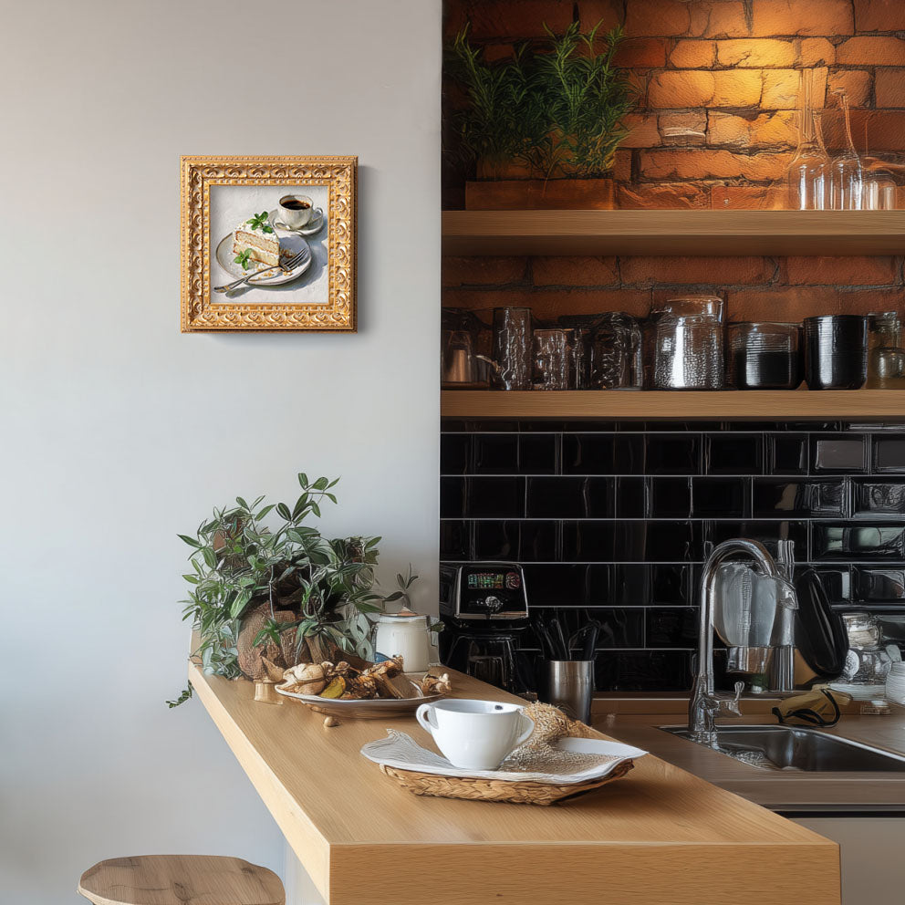Original Vanilla Cake With Coffee Oil Painting, Cozy Kitchen Wall Art, Hand Painted Ornate Gold Frame Home Decor, Charming Dining Room Decoration, Gift For Friends