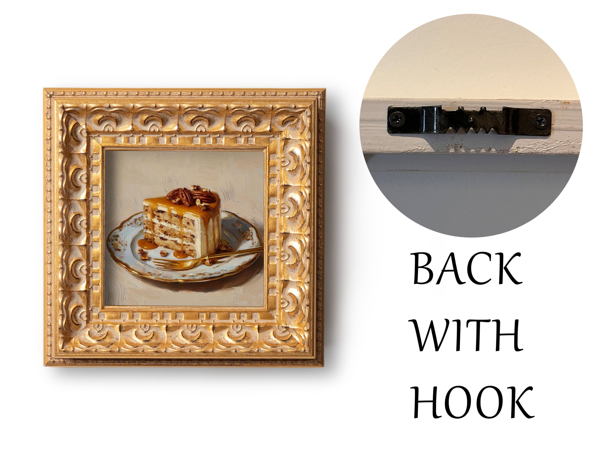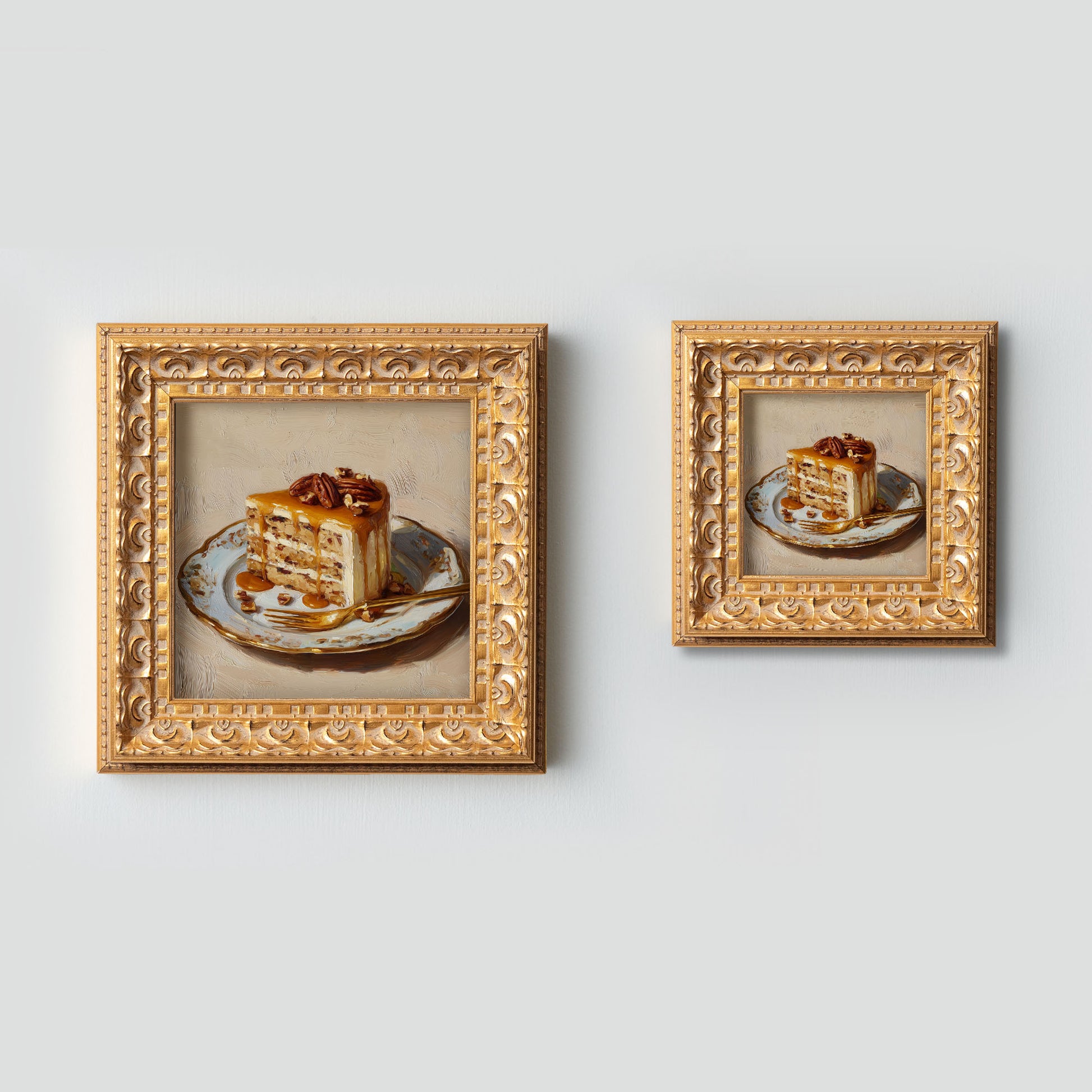 Still life Caramel Nut Cake Oil Painting, Small Original Art, Hand Painted Artwork, Wall Art Decor, Gift for Friends, 5X5 Gold Framed