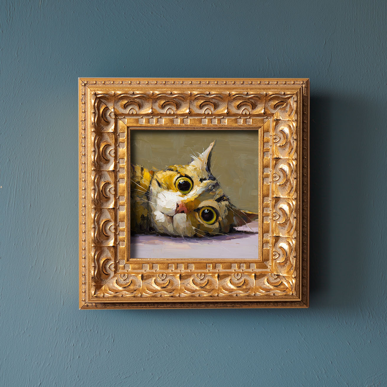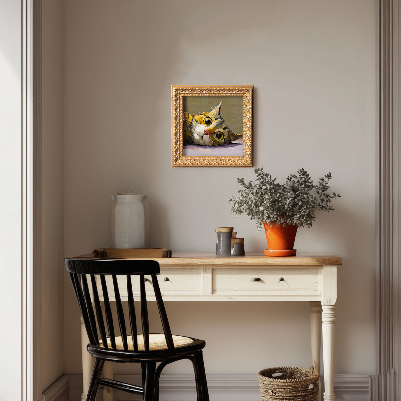 Tabby Cat Original Oil Painting, Cute Kitten Portrait, Impasto Animal Art, Whimsical Cat Wall Decor, Small Framed Artwork